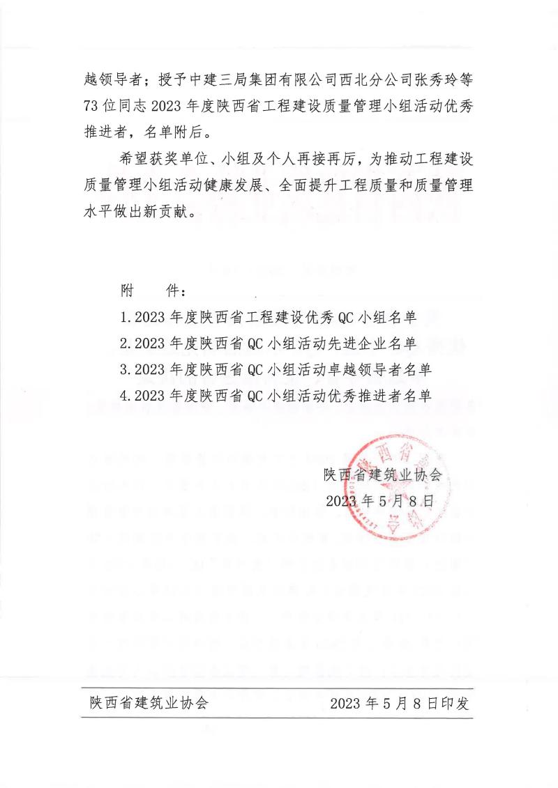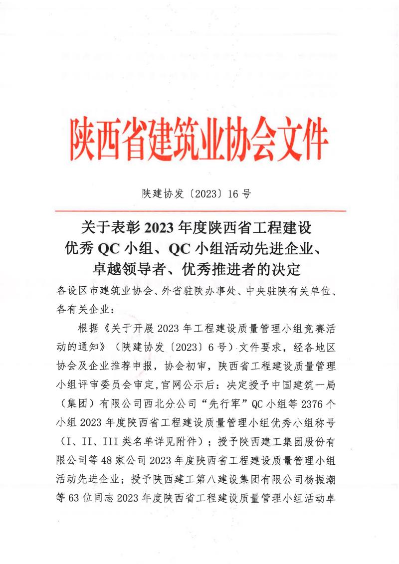 近期,在陜西省建筑業(yè)協(xié)會2023年QC成果評審中,港務(wù)中路項目QC小組《切割機擋火、降塵、水過濾系統(tǒng)的研制與應(yīng)用》榮獲二類成果獎。今后我們將繼續(xù)努力,再接再厲,爭取拿到更多成果獎項,為提升工程質(zhì)量貢獻一份住總力量。