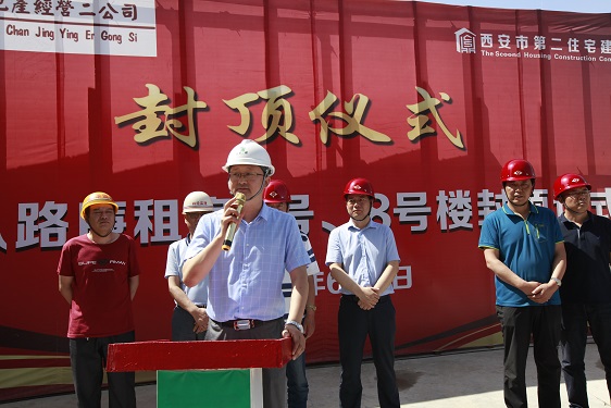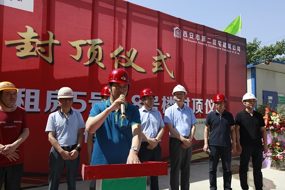 在封頂儀式上,經(jīng)營(yíng)二公司經(jīng)理董文軍對(duì)參與該項(xiàng)目的施工方、監(jiān)理方和勞務(wù)方的工作表示了衷心的感謝;林華監(jiān)理代表對(duì)5#、8#樓的施工質(zhì)量、進(jìn)度、安全等方面予以充分的肯定,并對(duì)5#、8#樓春節(jié)前搶抓進(jìn)度,創(chuàng)造月進(jìn)度5層半的成績(jī)表示贊嘆;市局領(lǐng)導(dǎo)強(qiáng)調(diào)丈八路廉租房項(xiàng)目在后期建設(shè)中,要繼續(xù)發(fā)揮5#、8#樓作風(fēng)過硬、技術(shù)過硬的優(yōu)勢(shì),在保證安全和質(zhì)量的前提下?lián)屵M(jìn)度,保質(zhì)量。房管處劉振龍?zhí)庨L(zhǎng)特別提出兩個(gè)具體要求:一是安全生產(chǎn)的重要性,要時(shí)刻保持警惕,一刻不得松懈;二是要注意治污減霾和施工噪音擾民的問題,要注意防塵覆蓋和定時(shí)噴淋,高考中考時(shí)間停止夜間施工,為保衛(wèi)西安藍(lán)天做貢獻(xiàn),為廣大學(xué)子營(yíng)造良好學(xué)習(xí)休息環(huán)境。