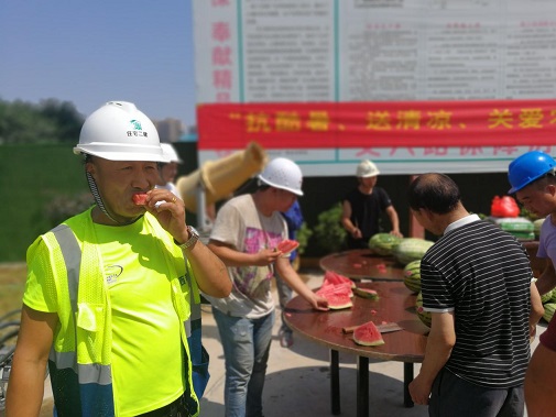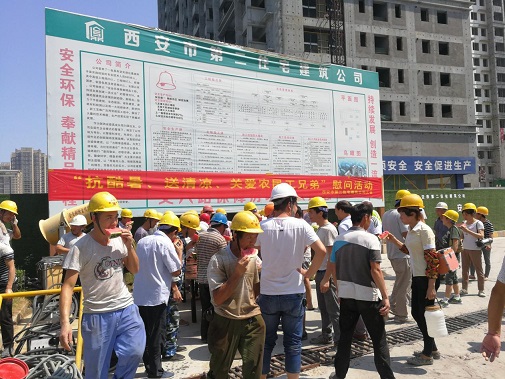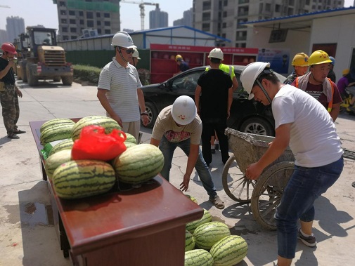 同時(shí)為進(jìn)一步推進(jìn)保障房項(xiàng)目文明施工管理,7月26日上午,公司黨委、工會(huì)、安委會(huì)再次對(duì)丈八路保障房項(xiàng)目開展“送清涼·享關(guān)愛”防暑降溫慰問活動(dòng)。將西瓜、綠豆、白糖等防暑降溫用品送達(dá)施工一線的工人手中,并叮囑大家一定要嚴(yán)格執(zhí)行高溫措施,注意勞逸結(jié)合和防暑降溫,切勿麻痹大意造成傷害。長(zhǎng)期身處一線職工對(duì)公司黨委、工會(huì)和安委會(huì)的關(guān)愛行動(dòng)表示感謝。