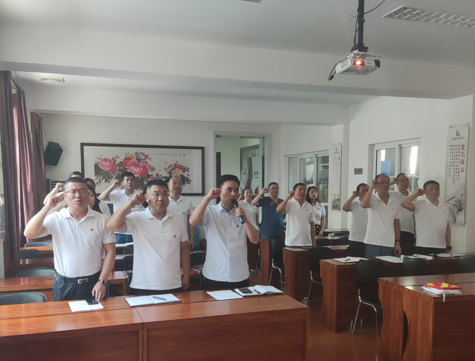 會(huì)議在雄壯的國(guó)際歌聲中開(kāi)始。公司黨委書(shū)記吳高祥、副經(jīng)理杜軍、紀(jì)委書(shū)記尚進(jìn)出席會(huì)議。隨后在黨委書(shū)記吳高祥同志的帶領(lǐng)下全體黨員面對(duì)鮮紅的黨旗,重溫了入黨誓詞。