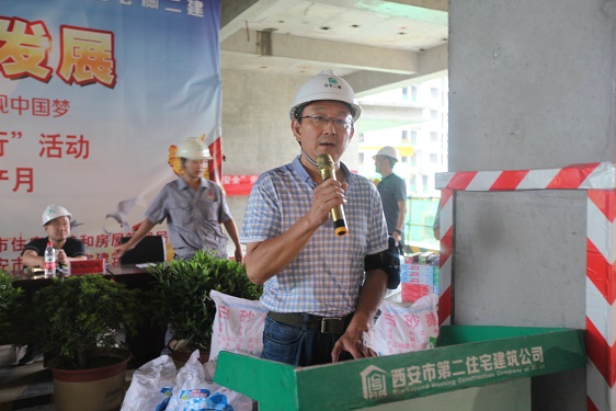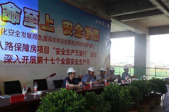 正值全國(guó)第十七個(gè)“安全生產(chǎn)月”,此次安全專項(xiàng)活動(dòng)本著“生命至上、安全發(fā)展”的理念,為推動(dòng)安全生產(chǎn)重點(diǎn)工作落實(shí),推動(dòng)安全理念深入人心,6月26日上午,西安市住房保障和房屋管理局在丈八路保障房建設(shè)項(xiàng)目一線施工現(xiàn)場(chǎng)開(kāi)展了2018年“安全生產(chǎn)萬(wàn)里行”專項(xiàng)安全教育活動(dòng),聚焦責(zé)任落實(shí)、科技強(qiáng)安、依法治安等方面的重點(diǎn)內(nèi)容。 西安市第二住宅建筑公司積極承辦了此項(xiàng)活動(dòng),參加本次活動(dòng)局屬房管處、保障處和保障中心的有關(guān)負(fù)責(zé)同志,還有開(kāi)發(fā)總公司、經(jīng)營(yíng)一公司、經(jīng)營(yíng)二公司、經(jīng)營(yíng)三公司、工商業(yè)經(jīng)營(yíng)公司、住宅一公司、林華監(jiān)理等單位負(fù)責(zé)安全管理的人員以及項(xiàng)目部各施工班組共計(jì)410余人。同時(shí)邀請(qǐng)中國(guó)安全健康教育中心安全應(yīng)急科專職教官作了現(xiàn)場(chǎng)指導(dǎo)。